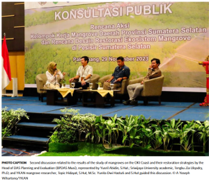 A key component of the MERA Program is the development of a comprehensive Ecosystem Restoration Plan Document specifically tailored for South Sumatra, with a primary focus on the coastal region of Ogan Komering Ilir Regency (OKI). Sriwijaya University (UNSRI) and YKAN initiated the drafting of this plan before 2023.