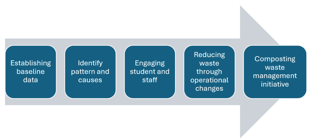 The first step is to measure current levels of food waste across dining halls, cafeterias, and events on campus. This includes tracking both pre-consumer waste (from preparation) and post-consumer waste (leftovers on students’ plates).