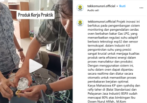 Sriwijaya University Computer Engineering students innovated the development of an intelligent monitoring and control system for LPG-fueled ovens, which utilizes adaptive temperature regulation based on ESP32 technology and thermocouple sensors. This innovation can help industrial processes for precise temperature control to maintain product quality and energy efficiency in manufacturing and production processes. By using this system, the temperature in the oven can be monitored in real time and adjusted automatically to ensure the combustion process runs optimally