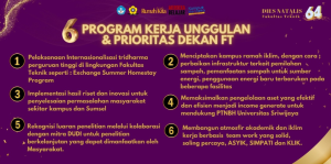 The Faculty of Engineering, Sriwijaya University (FT Unsri) officially launched six superior programs as derivatives of six priority programs initiated by the Chancellor of Sriwijaya University. This superior program was delivered to coincide with the peak of the commemoration of the 64th Anniversary of the Faculty of Engineering, Sriwijaya University.